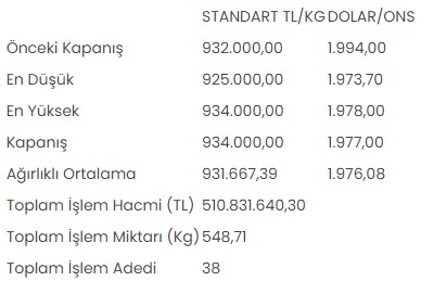 Tüm metallerdeki toplam işlem hacmi de 540 milyon 537 bin 904,30 lira düzeyinde gerçekleşti.