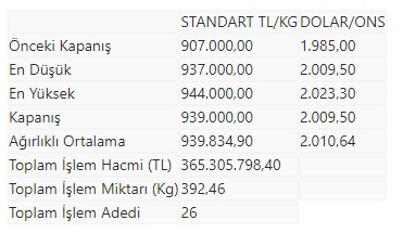 Tüm metallerdeki toplam işlem hacmi de 368 milyon 420 bin 683,85 lira düzeyinde gerçekleşti.