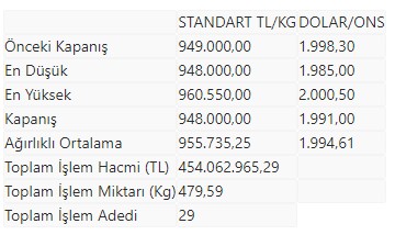 Tüm metallerdeki toplam işlem hacmi de 454 milyon 62 bin 965,29 lira düzeyinde gerçekleşti.