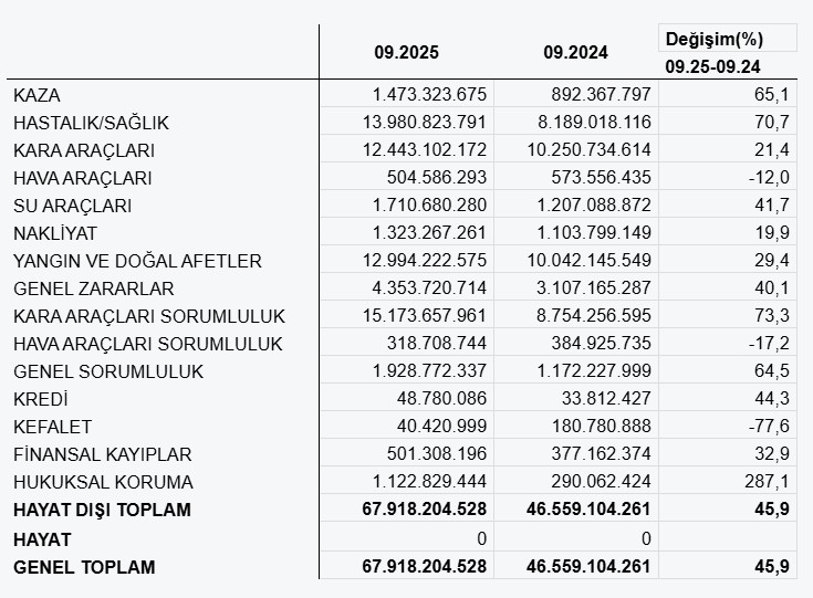 Branşlara göre Anadolu Sigorta’nın 2025 yılı 9 aylık prim üretimleri şu şekilde: