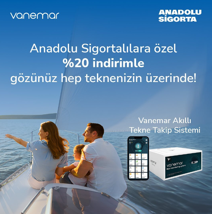 On binlerce tekneye güvence sağlayarak uzun yıllardır su araçları branşında sektör lideri olan Anadolu Sigorta, dünya çapında 20’den fazla ülkede tekne sahiplerine hizmet veren ve hayatlarını kolaylaştıran bir teknoloji şirketi olan Vanemar Akıllı Tekne Takip ve Güvenlik Sistemleri ile bir iş birliği yaptı. Bu iş birliği kapsamında Anadolu Sigorta’dan Gezinti Teknesi (Yat) Sigortası alan ve halihazırda poliçesi bulunan müşteriler, Vanemar akıllı tekne takip sistemi donanım ürünlerinde ve paketlerinde %20 indirim fırsatına sahip oluyor.