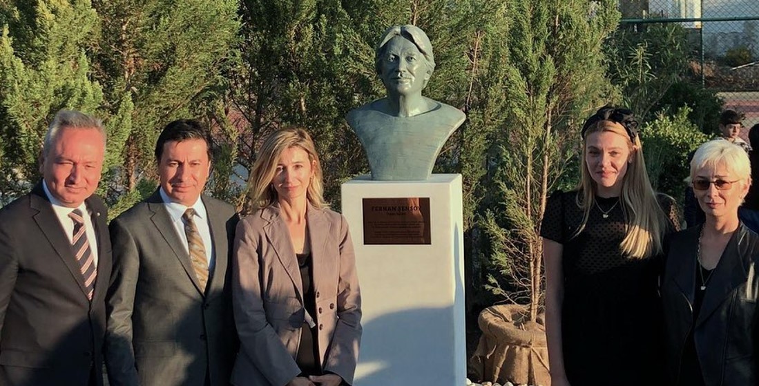 Heykeltraş Doç. Esra Sağlık Şenalp’in imzasını taşıyan büstün açılışı için yapılan töreni değerli tiyatrocu, Ferhan Şensoy'un kadim dostu Tarık Pabuççuoğlu sundu. Törene, Bodrum Belediye Başkanı Ahmet Aras, Galatasaraylılar Derneği Başkanı Fidel Berber, Şensoy’un kızı Derya Şensoy, eşi Elif Durdu Şensoy ve sevenleri katıldı. Yapılan konuşmalarda anılar ve Ferhan Şensoy eserlerinden alıntılarla hatırlandı.