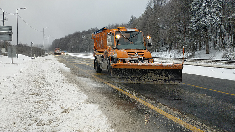 Karın ardından beyaz örtüyle kaplanan bölgede ulaşımın aksamaması için Karayolları ekipleri küreme ve tuzlama çalışması yürütüyor.