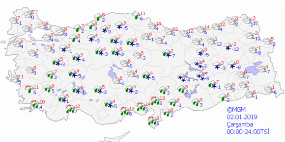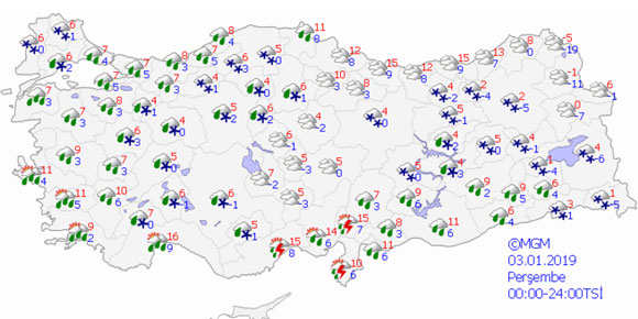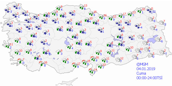 Öte yandan, dün akşam saatlerinde Meteoroloji Genel Müdürlüğü tarafından yapılan duyuruda, bugün yurt genelinde havanın yağışlı olacağı kaydedilmişti. Yağışların karla karışık yağmur ve kar şeklinde beklendiği açıklanmıştı.