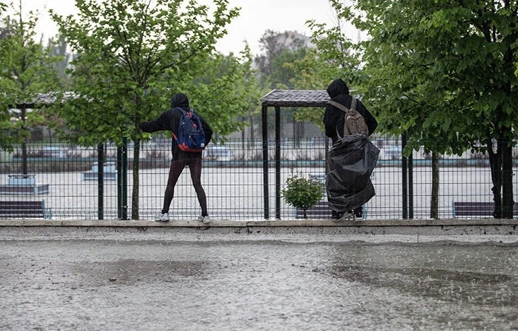 Eryaman'da evlerine gitmek için okuldan çıkan öğrenciler yağış nedeniyle zor anlar yaşadı.