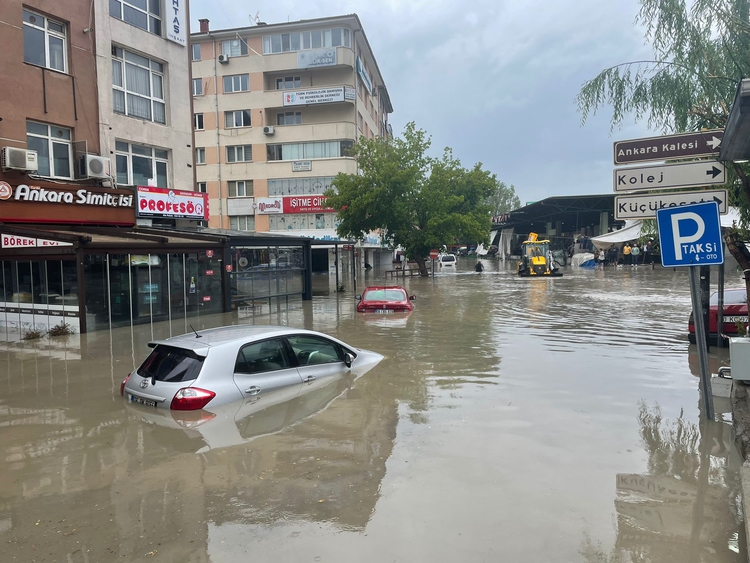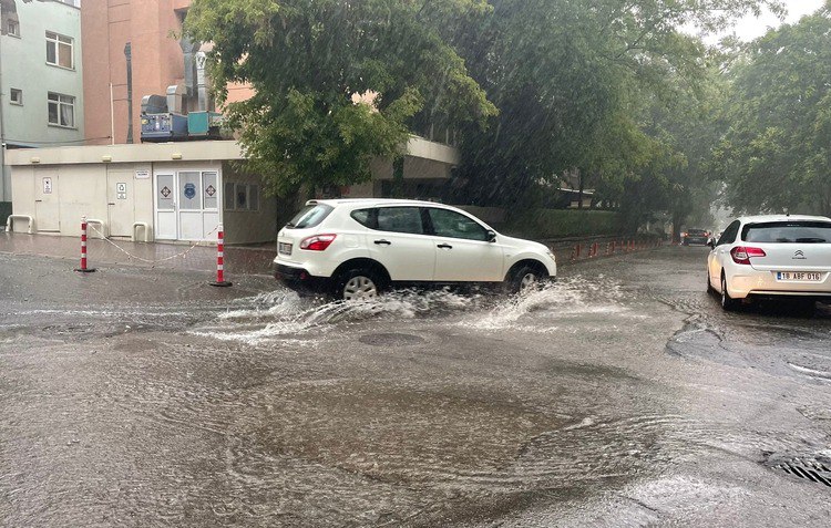 Araçlar biriken sular nedeniyle ilerlemekte güçlük çekerken, yağışa cadde ve sokaklarda hazırlıksız yakalanan vatandaşlar, kapalı alanlarda sağanağın durmasını bekledi.