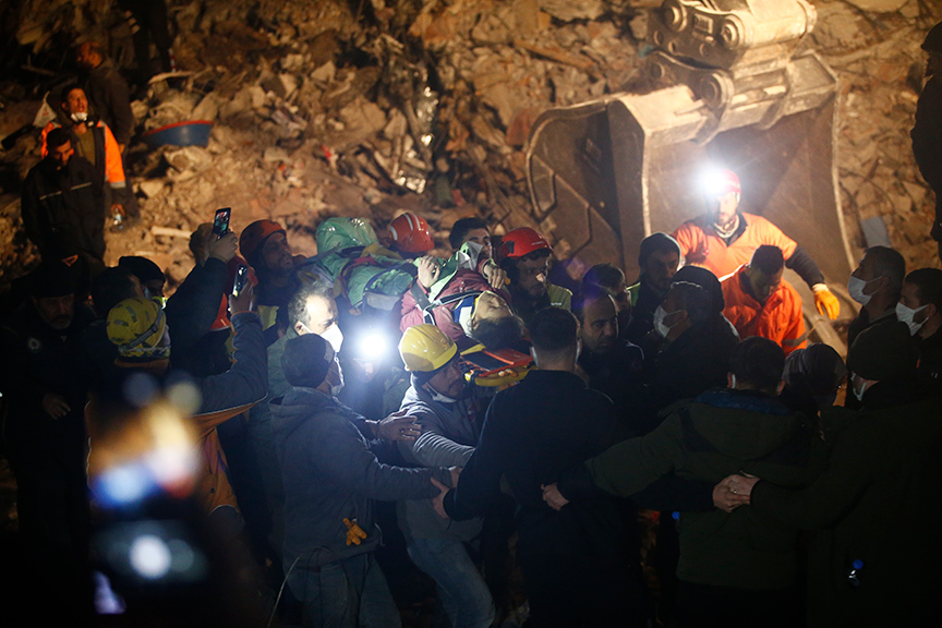 Ekipler yaklaşık 6,5 saat süren uğraşlar sonucu bir binanın enkazından 156 saat sonra kurtarmayı başardığı 18 yaşındaki Asyanur Öksüz'ü, sağlık ekiplerine teslim etti.