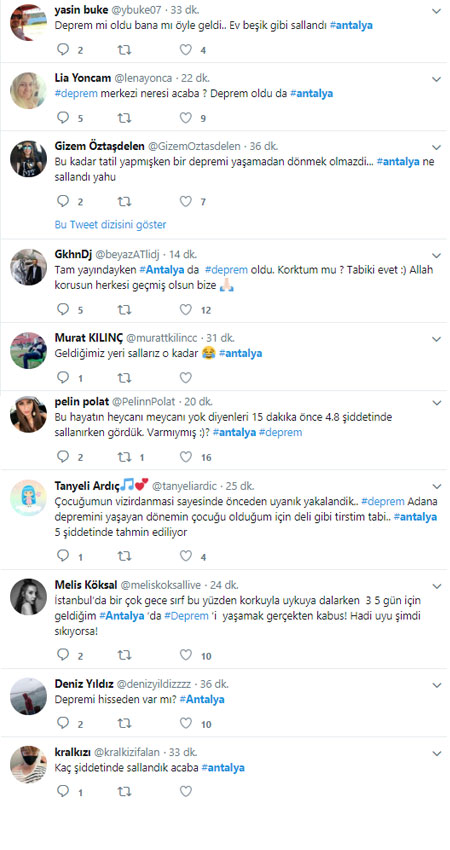 Gece yarısı meydana gelen deprem nedeniyle kentte büyük panik yaşandı. Yaşanan korku ve panik sosyal medyaya şöyle yansıdı:
