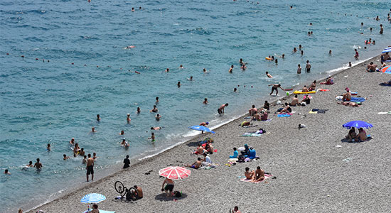 Antalya'da, hava sıcaklığının 38, deniz suyu sıcaklığının 27 derece olarak ölçülmesiyle turistler ve vatandaşlar Konyaaltı ve Lara Sahili'ne akın etti.