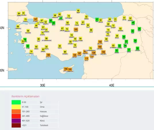 Meteoroloji Genel Müdürlüğü'nün verilerine göre, Türkiye genelinde toz taşınımının en yüksek olduğu şehir olan Kilis'i, Antalya takip etti. Antalya'da yüzey toz konsantrasyonu 130 mikrogram/ metkreküp ile 'hassas' seviyeye ulaştı. Toz taşınımının bugün gece saatlerine kadar devam etmesi bekleniyor.