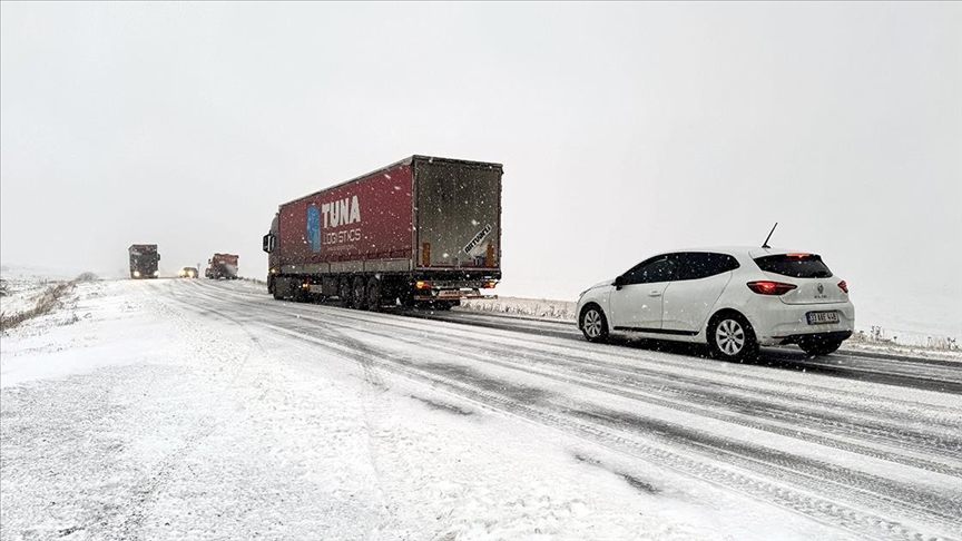 Ardahan-Şavşat kara yolunun Sahara mevkisinde oluşan buzlanma nedeniyle 4 tır ile 3 araç yolda kaldı.