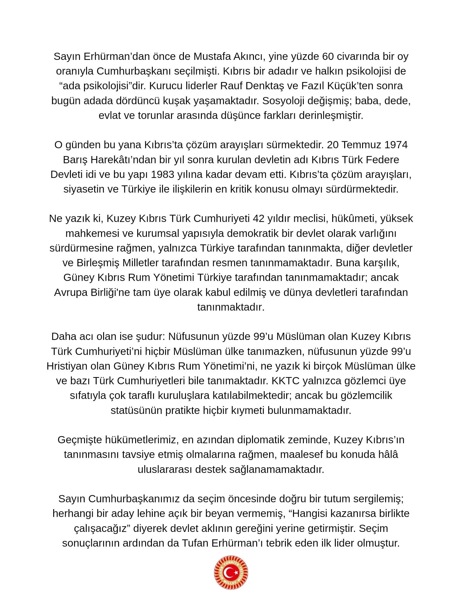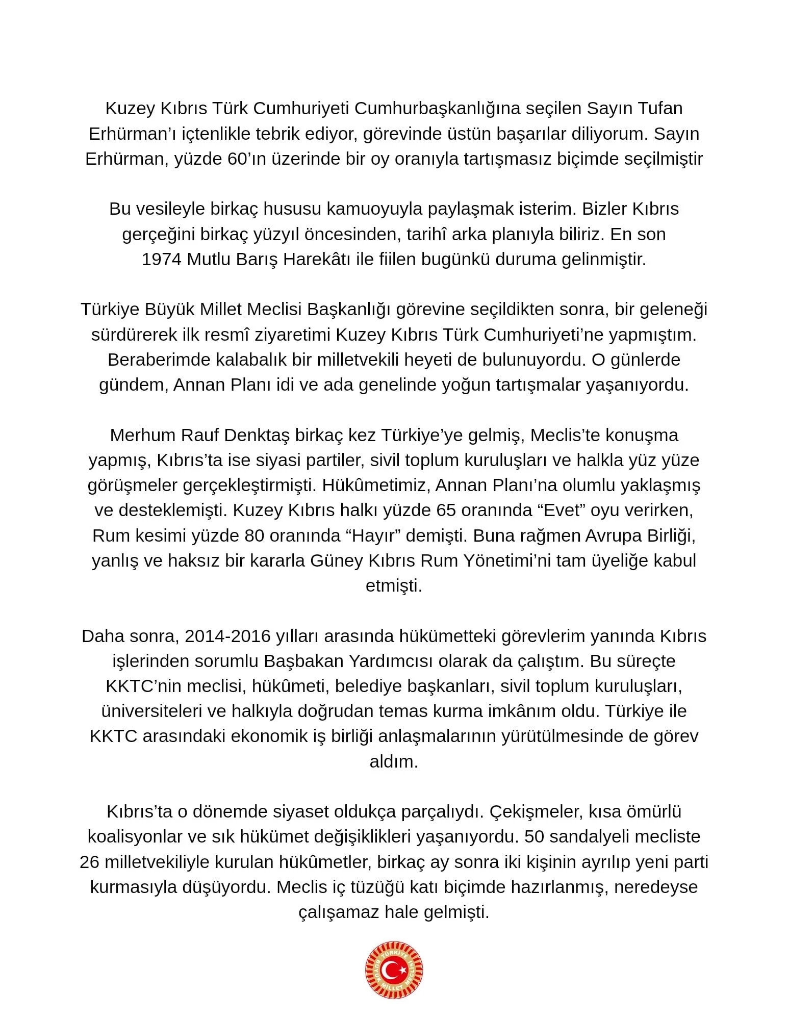 KKTC'de Erhürman dönemi: Kardeşlik ve istişare mesajı