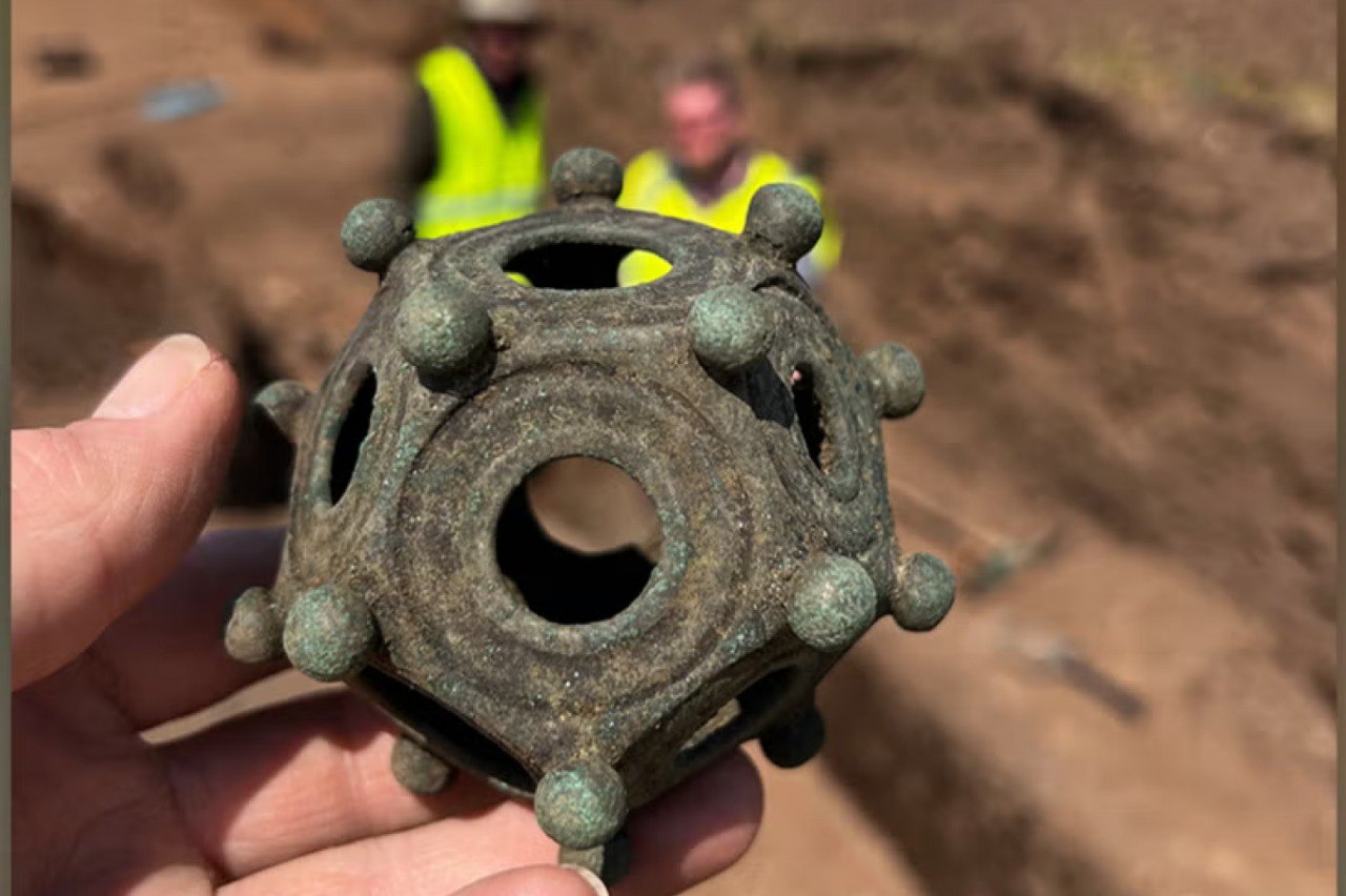 İngiltere'deki Lincolnshire'ın küçük Norton Disney köyünden bir grup yerel gönüllü, modern arkeologların kullanım amacını açıklamakta zorlandıkları bir Roma dodekahedronunu (12 kenarlı metal bir kabuk) ortaya çıkardı.