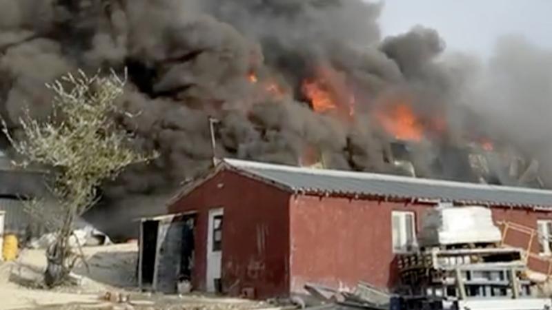 Taşoluk Mahallesi Egemen Caddesi'ndeki inşaat şantiyesine bulunan konteynerlerde henüz belirlenemeyen nedenle yangın çıktı.