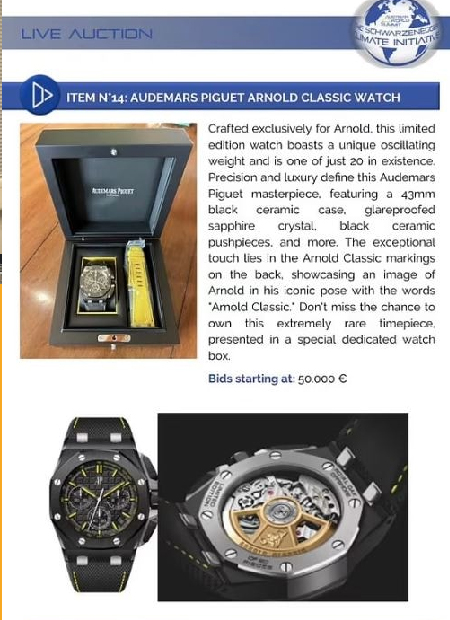 Schwarzenegger, yetkililere saatin Schwarzenegger İklim Girişimi'ne bağışlandığını ve Perşembe gecesi Avusturya'nın Kitzbühel kayak merkezinde yapılacak bir etkinlikte açık artırmayla satılacağını anlatmaya çalıştığını söyledi. Bild'e göre yetkililer, Schwarzenegger'den 4 bin euro vergi ve 5 bin euro ceza dahil 35 bin euro talep etti.