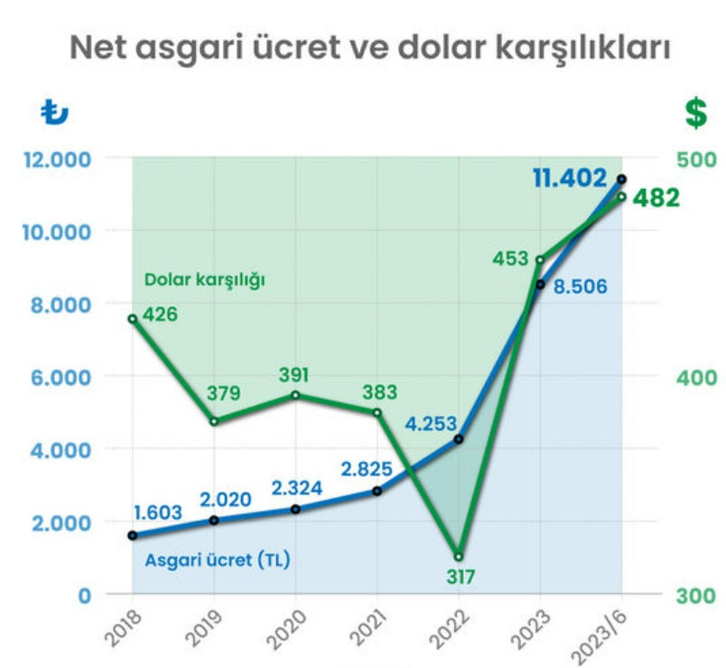 Sene başında belirlenen asgari ücretle doğrudan bugünü karşılaştırırsak dolar bazında yüzde 6.4 zam yapıldı.