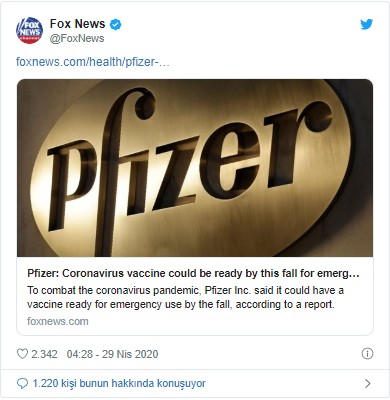 Almanya merkezli BioNtech şirketiyle korona virüs karşı bir aşı geliştirmek için çalışan Pfizer, izin alınması durumunda ABD’de aşı testlerinin gelecek hafta başlayabileceğini belirtti.
