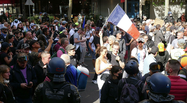 Başkent Paris'te de aşı karşıtları meydanlardaydı. Binlerce aşı karşıtı sağlık kartı kullanımı ve sağlık çalışanlarının zorunlu aşılanmasına yönelik yasa tasarılarını protesto etti. Paris'in 3 farklı noktasında düzenlenen gösteriler, sert polis denetimi altında gerçekleştirildi. Eylemciler, korona virüse karşı geliştirilen aşıların güvenilir olmadığını savundu.