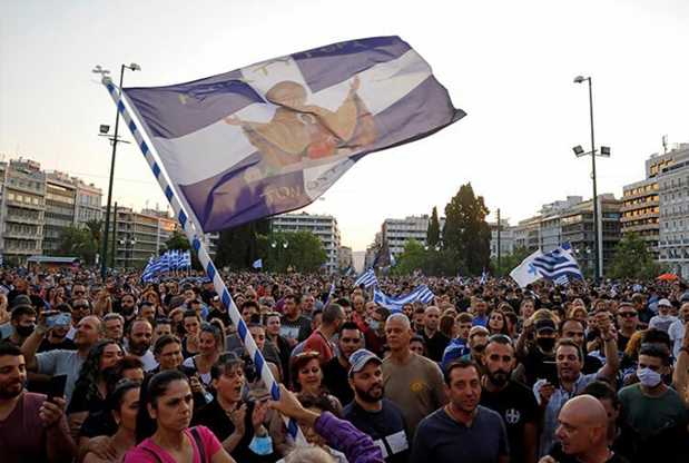 (Atina'da da aşı karşıtları sokaktaydı)
