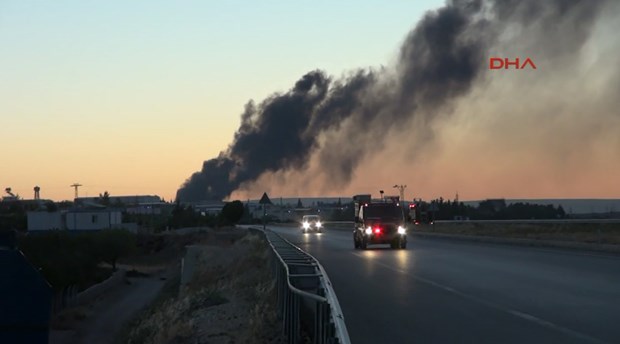 "Kilis- Gaziantep karayolunun 15'nci kilometresinde askeri birliğin barınma merkezinde yangın çıkmış, yangın rüzgarın etkisi ile mühimmatın bulunduğu depoya sıçrayarak patlamaya ve yangının büyümesine yol açmıştır. Herhangi bir can kaybı bulunmamaktadır. Dumandan hafif derecede etkilenen 10 askerimiz Kilis Devlet Hastanesinde tedavi altına alınmış olup, Kilis ve Gaziantep İtfaiye ekiplerince söndürme ve soğutma çalışmalarına başlanmıştır."
