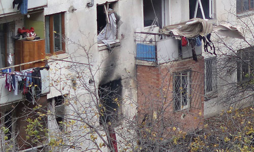 Tiflis'te 17 saat süren operasyonda ölü ele geçirilen teröristlerin bulunduğu ev.