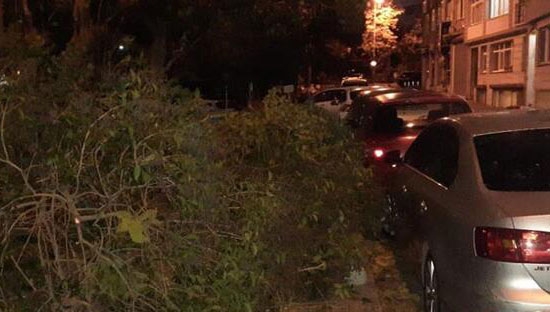 İstanbul'da lodos nedeniyle sahilde dalgalar oluşurken Bakırköy'de park halindeki otomobillerin üzerine bir ağacın kopan dalları düştü.