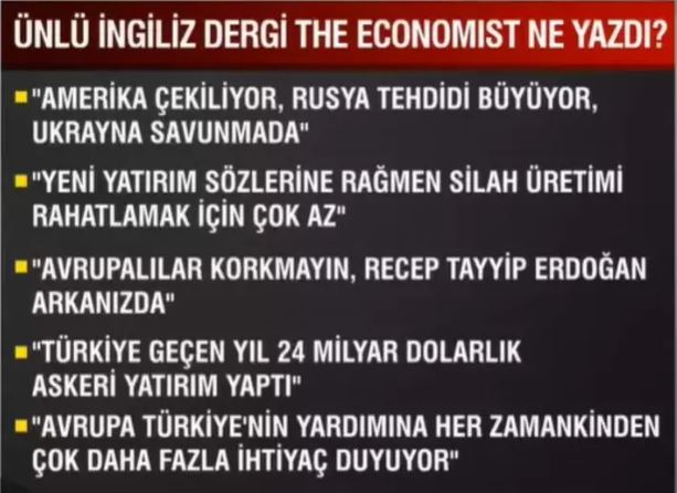 “Amerika çekiliyor, Rusya tehdidi büyüyor. Ukrayna savunmada. Yeni yatırım taahhütlerine rağmen silah üretimi rahatlamak için çok az. Avrupalılar korkmayın, Recep Tayyip Erdoğan arkanızda.”