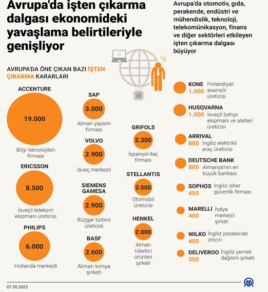 Avrupa'da otomotiv, gıda, perakende, endüstri ve mühendislik, teknoloji, telekomünikasyon, finans ve diğer sektörlerdeki işten çıkarma kararlarına her gün yenileri ekleniyor.