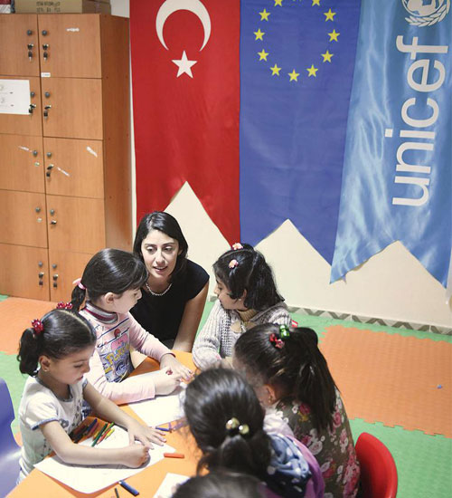 TÜRKİYE’deki Suriyelilerle ilgili en büyük sorunlardan biri çocukların okula gidememesiydi. Başta Geçici Eğitim Merkezleri’ne yönlendirilen çocukların daha sistemli okullulaştırılabilmesi için AB’nin fonuyla Milli Eğitim Bakanlığı bünyesinde ‘Suriyeli Çocukların Türk Eğitim Sistemine Entegrasyonunun Desteklenmesi Projesi’ başlatıldı. Bütçesi 300 milyon Euro. Proje için 7500 kişi çalışıyor, 23 ilde uygulanıyor.