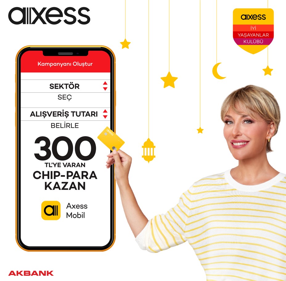 20 yıldır müşterilerine birbirinden kazançlı kampanyalar sunan Axess, yoğun ilgi gören müşteri odaklı kampanyası “Kendi Kampanyanı Kendin Yap”ı bu Ramazan döneminde yeniden hayata geçirdi. ‘Kendi Kampanyanı Kendin Yap’ ile Axess ve Wings sahipleri Axess Mobil’den harcama yapacakları market, giyim, elektronik, restoran ve seyahat sektörlerinden dilediğini seçiyor, ödül tipini chip-para veya Mil Puan olarak belirliyor ve belirleyecekleri harcama tutarına göre özgürce kendi kampanyalarını oluşturabiliyor.