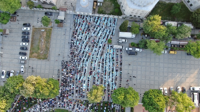 Sabah namazı ve Ramazan Bayramı namazını kılmak isteyen vatandaşlar erken saatlerden itibaren Ayasofya-i Kebir Cami-i Şerifi'ne geldi. Kovid-19 tedbirleri kapsamında içeriye sınırlı sayıda kişi alınırken vatandaşların bir bölümü de cami avlusu ve meydanda saf tuttu.