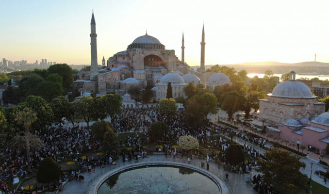 İstanbul'un 1453'teki fethinden müzeye çevrildiği 1934'e kadar cami olarak kullanılan ve 86 yıllık müze fonksiyonunun ardından 24 Temmuz 2020'de yeniden ibadete açılan Ayasofya-i Kebir Cami-i Şerifi'nde, ilk Ramazan Bayramı namazı heyecanı yaşandı.