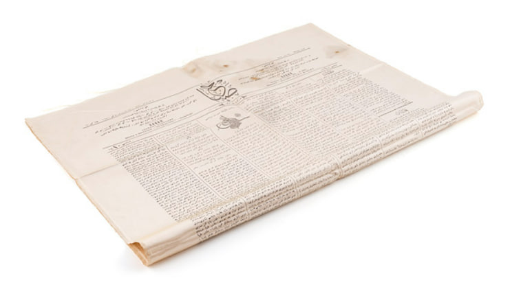 Sultan II. Abdülhamid Han tarafından Ahmed Reşad Paşa’ya hediye edilmiş 19 Kasım 1900 tarihli Sabah Gazetesi'nin ilk sayfası.