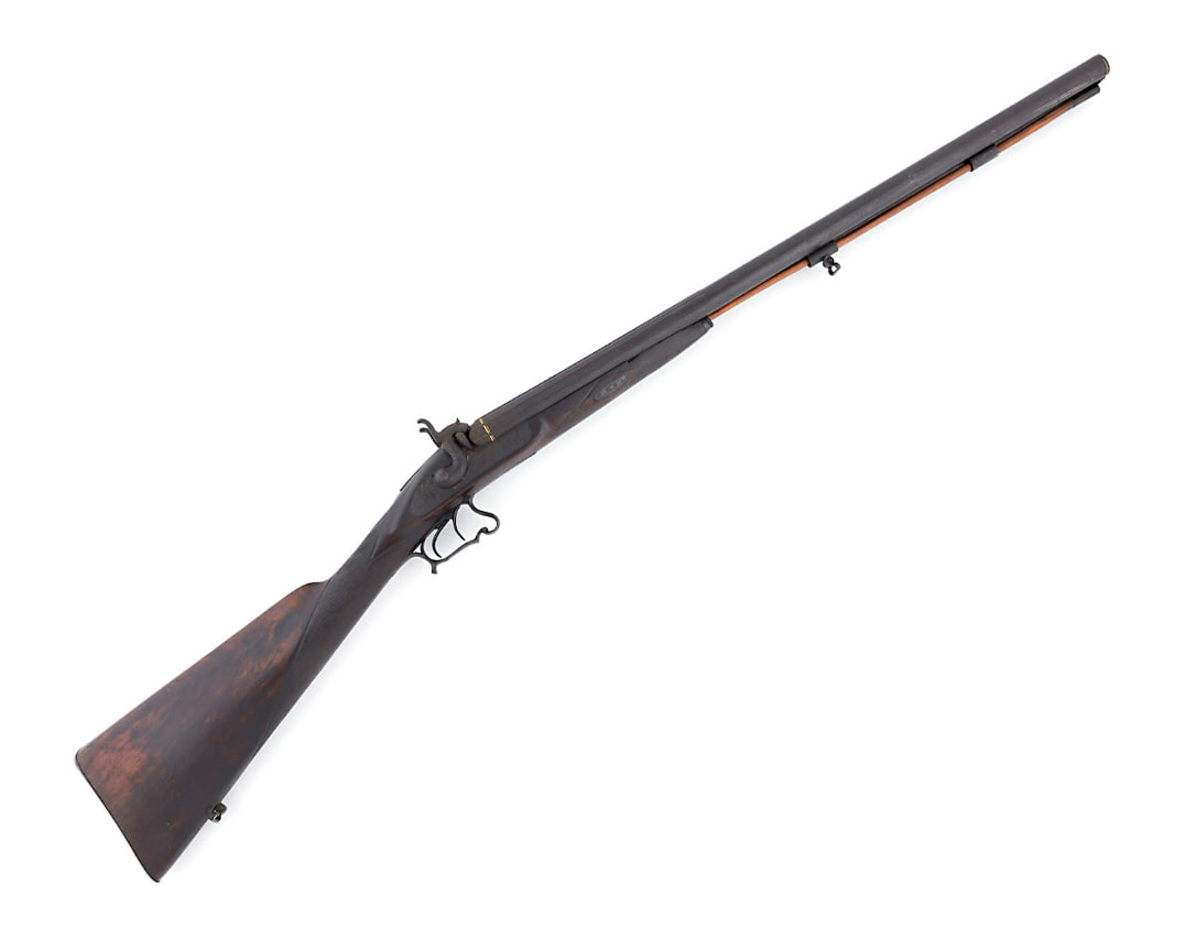 Namlusu altın kakma işçilikli tüfek. Mekanizması “Rokoko” üslubunda grave dekorlu, stilize floral motifler ile zenginleştirilmiş. Kabzası ahşap. Çift horozlu, çift tetikli. Askı kancalı, orijinal harbili.