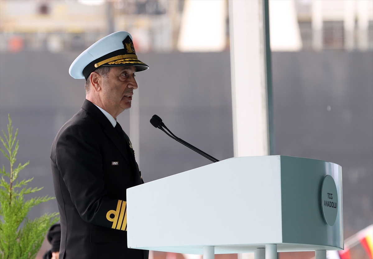 Deniz Kuvvetleri Komutanı Oramiral Tatlıoğlu konuşması sırasında TCG Anadolu'nun özelliklerine ilişkin de bilgi verdi.