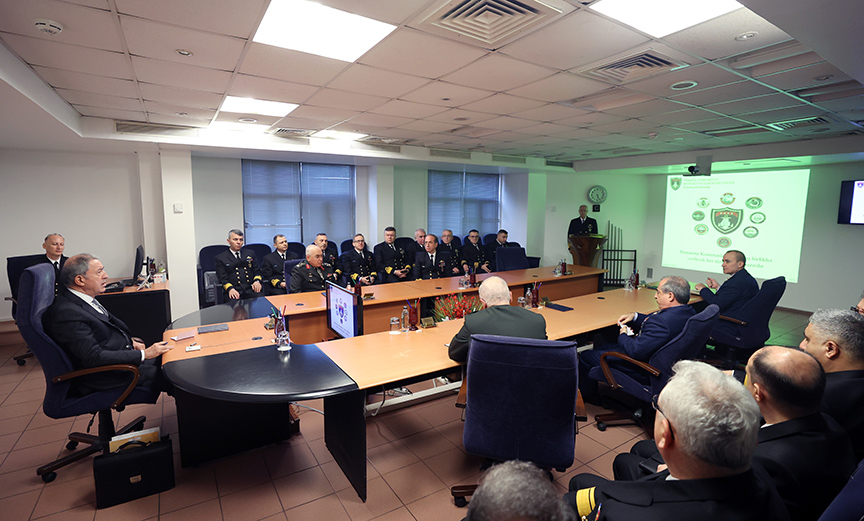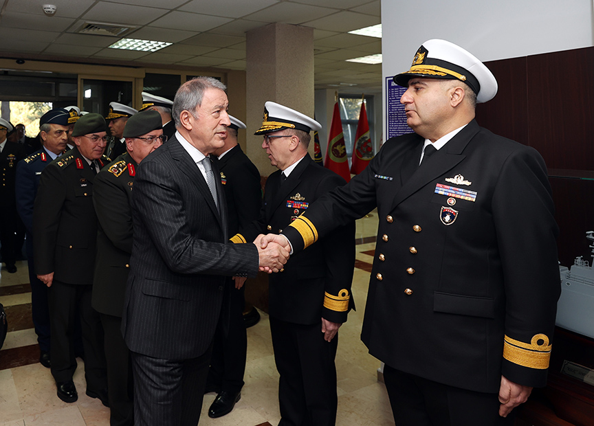 Donanma Komutanı Koramiral Kadir Yıldız tarafından karşılanan Akar, onur kıtasını selamladıktan sonra Komutanlığın faaliyetlerine ilişkin brifing aldı, talimatlar verdi.