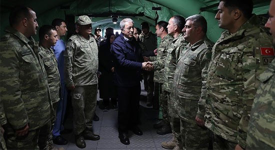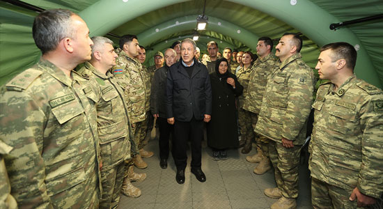 Kahramanmaraş'ta Mehmetçik tarafından kurulan sahra hastanesini ziyaret eden Milli Savunma Bakanı Akar, hastanede görev alan Azerbaycanlı 12 askeri hekim ve 8 hemşire ile de bir araya geldi.
