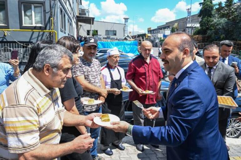Kacır, işçilerin bayramını tebrik ederek, onlara baklava ikram etti.