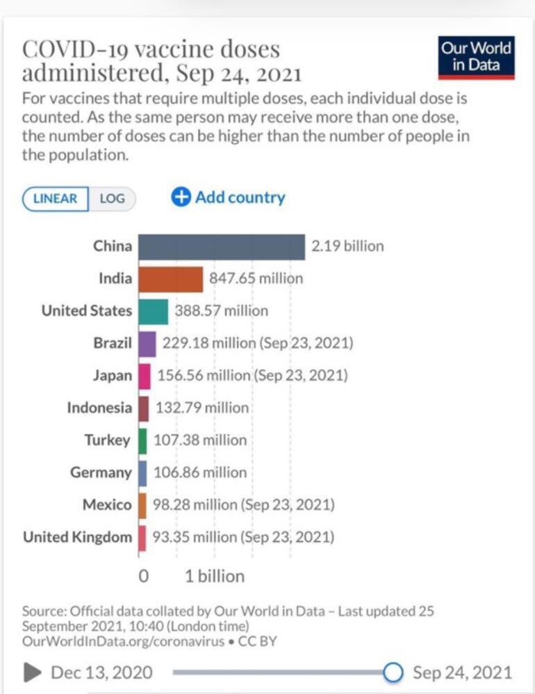 Doz sayısında dünyada 7. ülkeyiz' diyen Bakan Fahrettin Koca, "Kovid-19’a karşı uygulanan toplam aşı dozu sayısında, nüfusu bize yakın ve aşı üreticisi olan Almanya’yı da geride bıraktık. Tüm dünyada 7. sıradayız. Türkiye’den önceki ilk 6 sırada, aşı üreticisi Çin ve ABD ile çok yüksek nüfuslu ülkeler var." ifadelerine yer verdi.