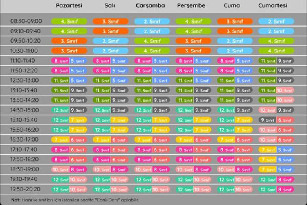Paylaşımda ayrıca 1'inci sınıflar hariç, 2-12'nci sınıf öğrencilerinin canlı ders programı tablosuna yer verildi.