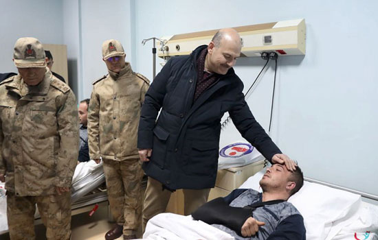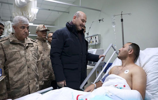 Havalimanından Yüksekova Devlet Hastanesi'ne geçen Soylu, Irak'ın kuzeyindeki Dayla Üs Bölgesi'nde teröristlerle çıkan çatışmada yaralanan Piyade Yüzbaşı Ersoy Cansu, Piyade Uzman Çavuşlar Ahmet Varlı ve Mustafa Yıldırım ile geçirdiği rahatsızlık sonucu hastanede tedavi gören sözleşmeli asker Mehmet Taşar'ı ziyaret etti.