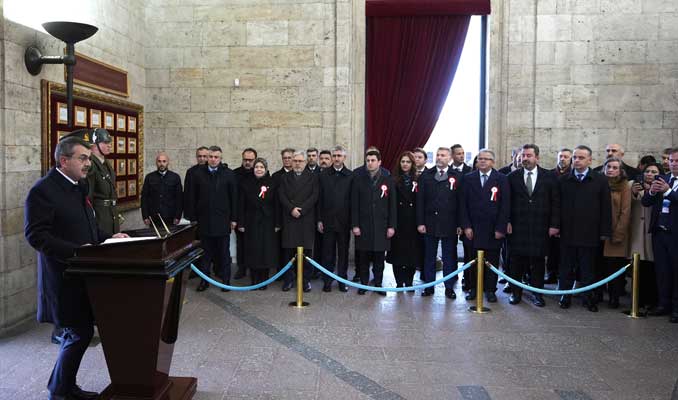 Milli Eğitim Bakanı Yusuf Tekin, başkanlığındaki Bakanlık bürokratları ile öğretmenlerden oluşan heyet, Aslanlı Yol'dan yürüyerek Gazi Mustafa Kemal Atatürk'ün mozolesine geldi.
