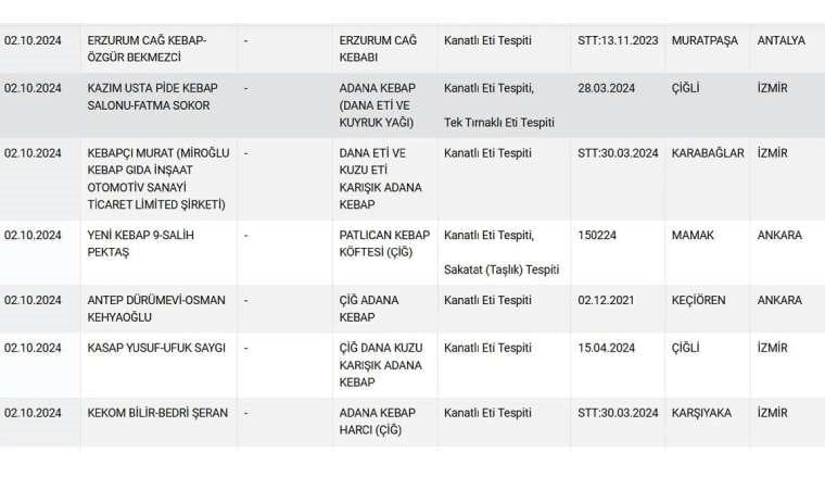 Tarım ve Orman Bakanlığı, 'Taklit veya Tağşiş Yapılan Gıdalar' ve 'Sağlığı Tehlikeye Düşürecek Gıdalar' başlıkları altında yayımladığı listeye yeni firmalar ekledi. Listelerde yer alan İstanbul, Ankara ve İzmir'deki kebapçılar dikkatleri üzerine çekti.