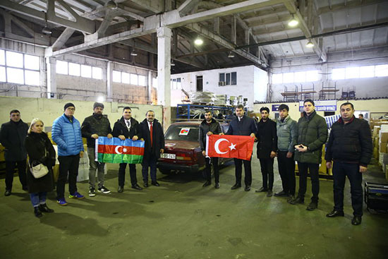 Depremlerin ardından Türkiye'ye göndermek için eski aracına yüklediği eşyalarla fotoğraflanan Azerbaycanlı Server Beşirli (34), yardım çalışmalarına katılmak üzere Türkiye'ye gönderilecek.