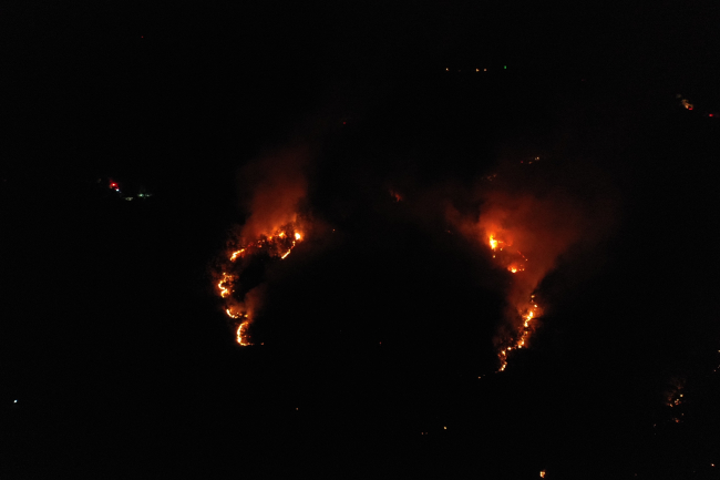 Dün akşam saatlerinde çıkan yangına, 2 uçak, 5 helikopter, 35 arazöz, 8 su ikmal aracı, 4 kara ekibi, 5 dozer ve 220 personelle müdahale edilmiş, havanın kararmasıyla da gece görüşlü helikopter devreye girerek söndürme çalışmalarına destek vermişti.