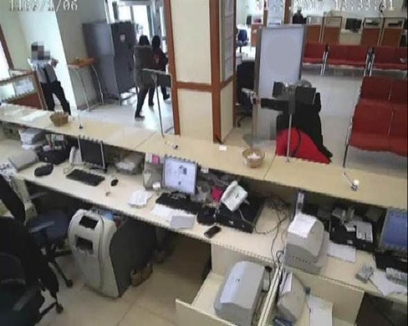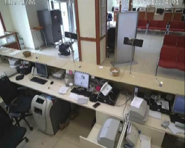 Soygun girişimi bankanın güvenlik kamerasına saniye saniye yansıdı. Görüntülerde soyguncu U.Ç. kapişonlu ve sırt çantasıyla bankaya girip bankoya yöneliyor. Silahını çıkaran U.Ç. bir müşteriyi rehin alıyor. Bu sırada çevredeki diğer müşteriler dışarı kaçarken bankanın güvenlik görevlisi S.P. de silahını çıkarıp soyguncuya yöneltiyor. Bir süre sonra soyguncu ve rehine alınan kadın bankonun altına doğru gidiyor. Bu sırada silahlar ateşleniyor. Soyguncu bacağından güvenlik görevlisi ise karnından yaralanıp yere düşüyor. Soyguncu rehineyi bırakıp olayın ardından hızla bankadan kaçıyor.