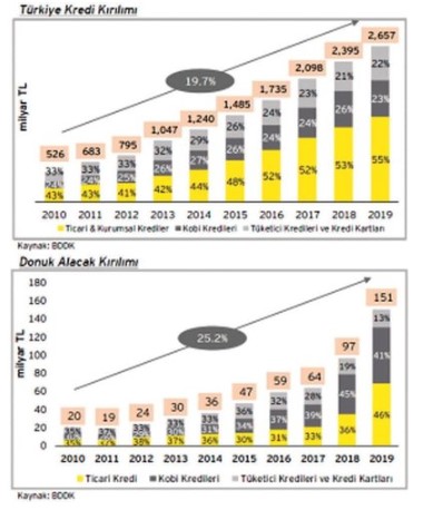 Bankacılık sektöründe kredi hacmi 2018'de yüzde 14, 2019'da yüzde 11 büyüme gösterdi. Donuk kredi hacmi ise yüzde 50'nin üzerinde arttı. Özellikle Ağustos 2018'deki kur krizinden sonra ticari ve kurumsal kredilerde bankaların donuk alacakları yükseldi. Bankalar donuk kredileri yeniden yapılandırma ve refinansman yöntemleriyle iyileştirebiliyor. Ancak bir şirketin kredisinde birden çok banka söz sahibi olduğu zaman yapılandırmalarda iş tıkanıyor. Bu da bankaların donuk alacaklarının iyileştirilmesinin önünü tıkıyor.