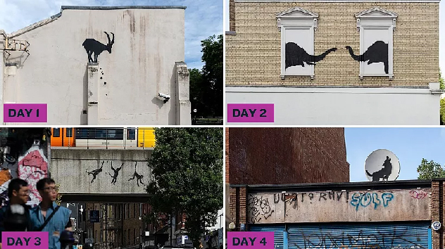Banksy'nin hayvan temalı serisi, ilk olarak 5 Ağustos Pazartesi günü başladı. Sanatçı hayvan serisinin ilk eserini Londra'nın güneybatısındaki Kew Köprüsü yakınlarında sergiledi. Sanatçının kendine özgü şablon stiliyle yaratılan eser, yüksek bir tepede duran bir keçiyi tasvir ediyor. Tepeden yere küçük kaya parçalarının yuvarlandığı da görülüyor.