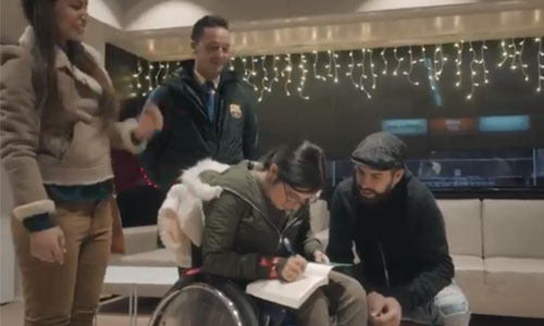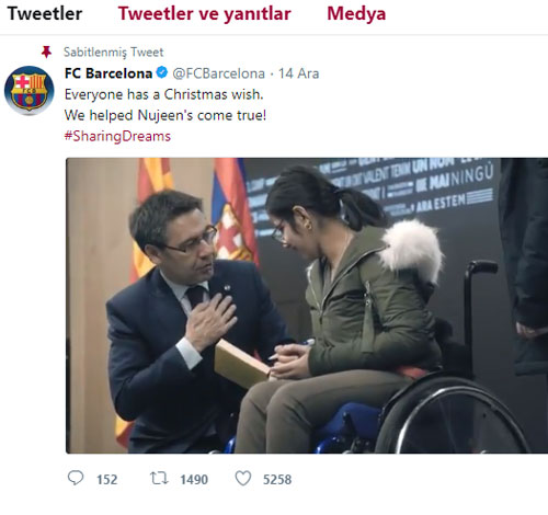 Barcelona'nın sosyal paylaşım sitesi Twitter hesabına eklenen videoda, Suriyeli sığınmacı Nujeen Mustafa'nın hikayesine ve hayallerini gerçekleştirerek Barcelona kafilesiyle tanışmasına yer verildi.