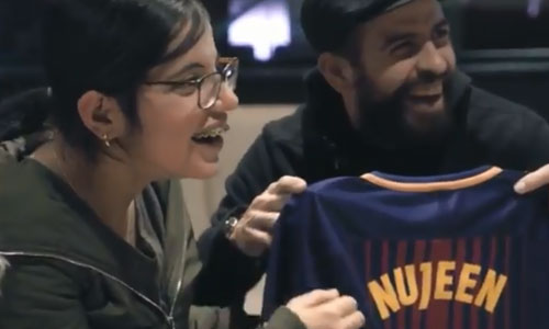 Barcelona'nın takım kafilesini taşıyan otobüs, Suriyeli sığınmacının Köln'de kaldığı evin önüne kadar gelerek onu İspanya'ya götürdü. Burada Camp Nou Stadı'nda Barcelona'nın Celta Vigo ile yaptığı lig maçını tribünden takip etme fırsatını yakalayan Suriyeli genç kıza, sırtında "Nujeen" yazan forma hediye edildi.
